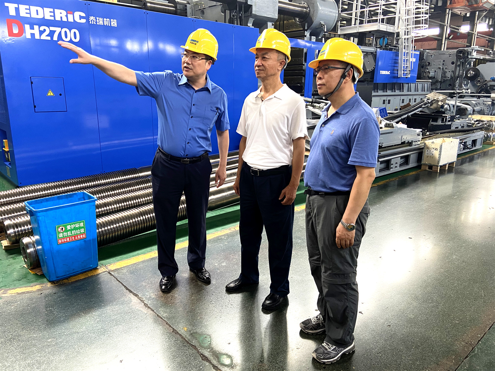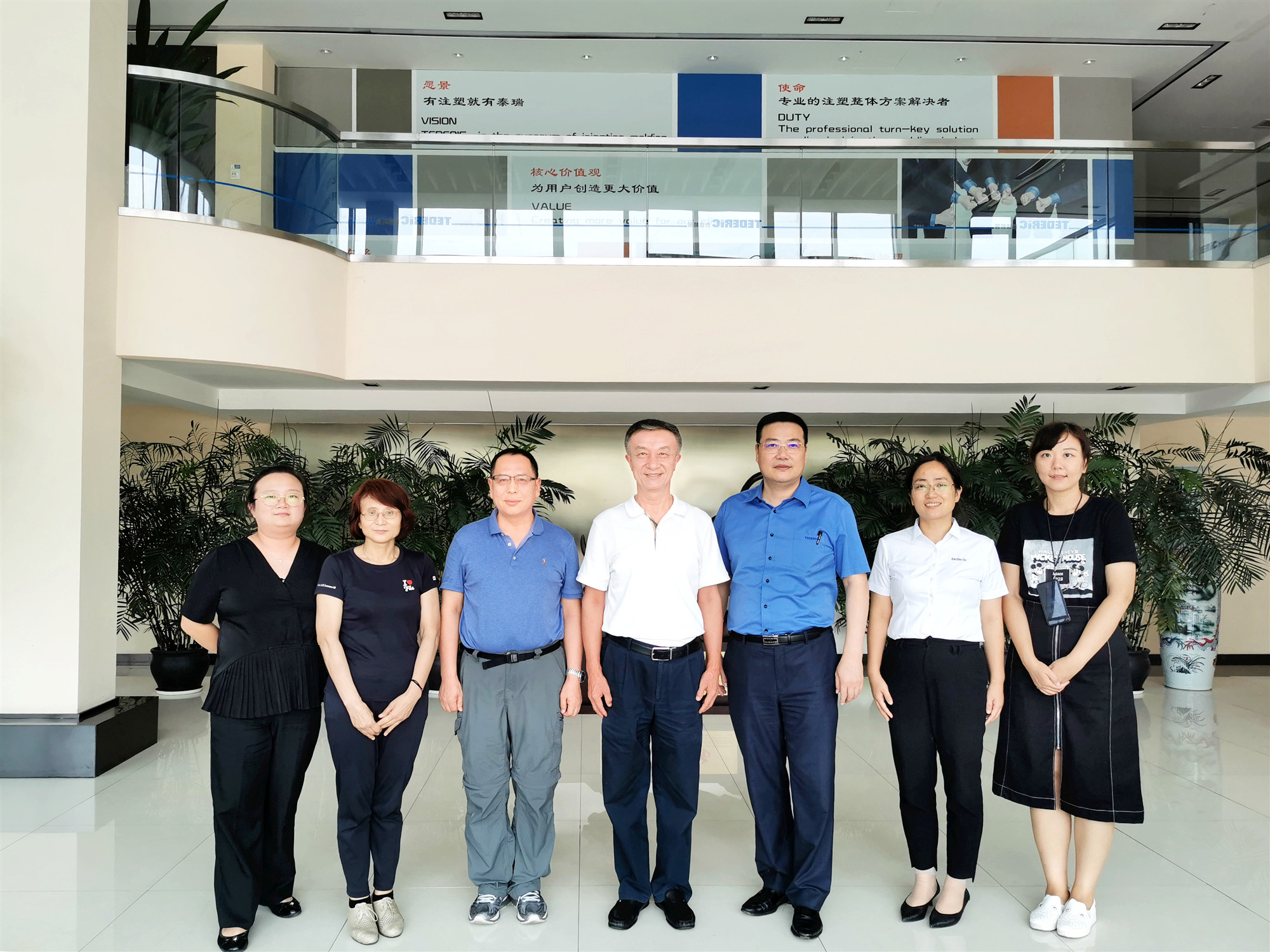 为更好的服务行业企业,了解疫情影响及复工复产情况,倾听企业声音,反映企业诉求,中国塑料加工工业协会在疫情防控常态化条件下,再次开启了对浙江、江苏地区的调研工作。2020年8月5日,中国塑协朱文玮理事长、王占杰副理事长兼秘书长、焦红文副秘书长兼办公室及经济合作部主任、经济合作部副主任贾宁一行四人,来到此次调研之行第一站-杭州,参观考察了泰瑞机器股份有限公司,受到了公司董事长兼总经理郑建国、市场部经理周玲、国内贸易部总监蒋璟的热情接待。
