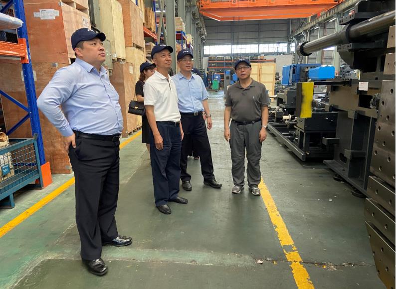 在王俊傑董事长等公司高管的陪同下,调研组首先参观了富强鑫(宁波)机械制造有限公司注塑机生产车间,并在座谈时听取了王俊傑董事长有关富强鑫集团发展历程、产品情况、上半年运行、杭州湾新工厂的相关情况介绍。
