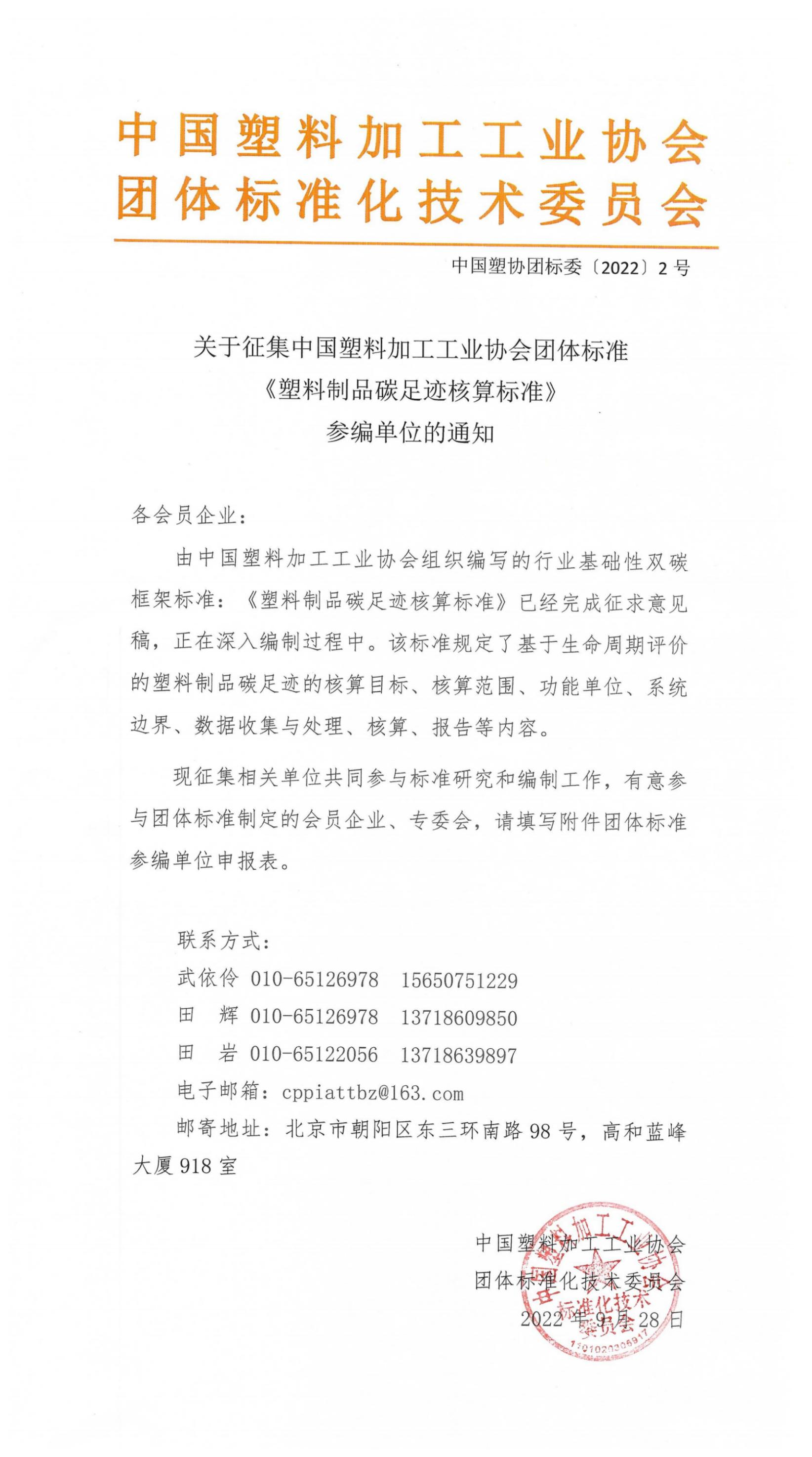 中国塑协团标委〔2022〕2号