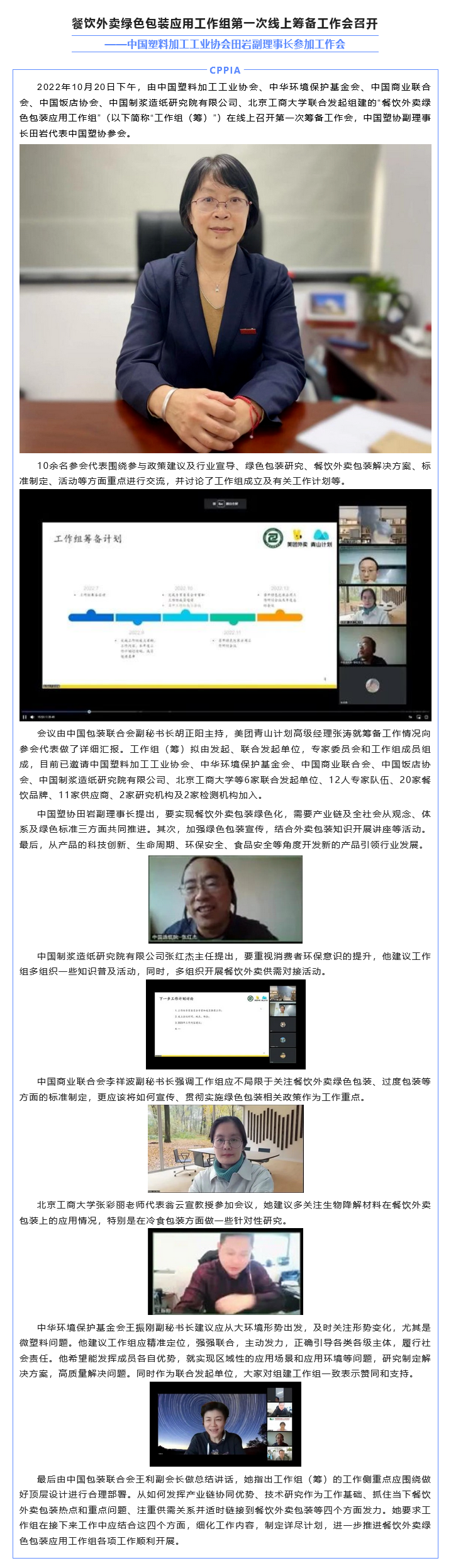 餐饮外卖绿色包装应用工作组第一次线上筹备工作会召开