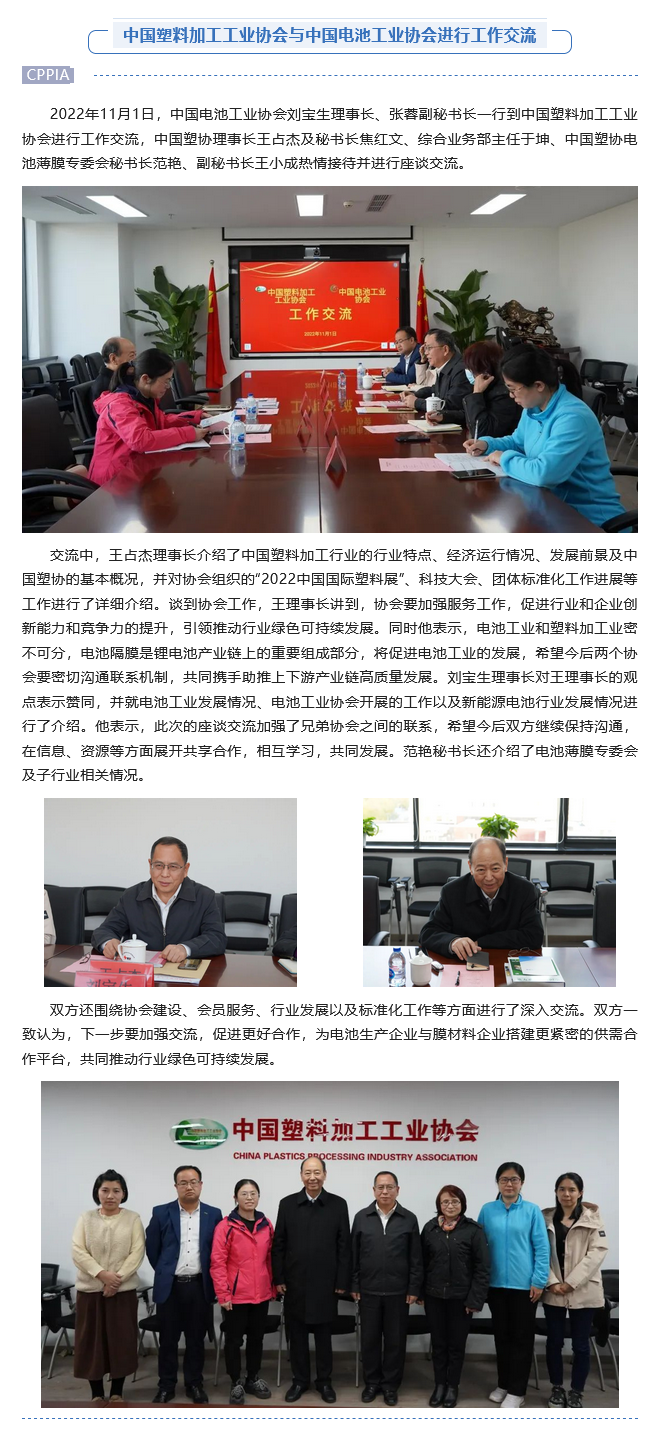 中国塑料加工工业协会与中国电池工业协会进行工作交流