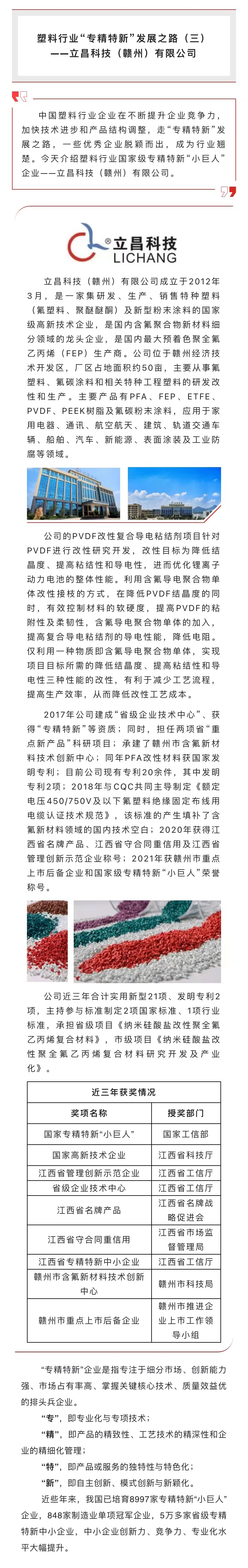 塑料行业“专精特新”发展之路(三)——立昌科技(赣州)有限公司