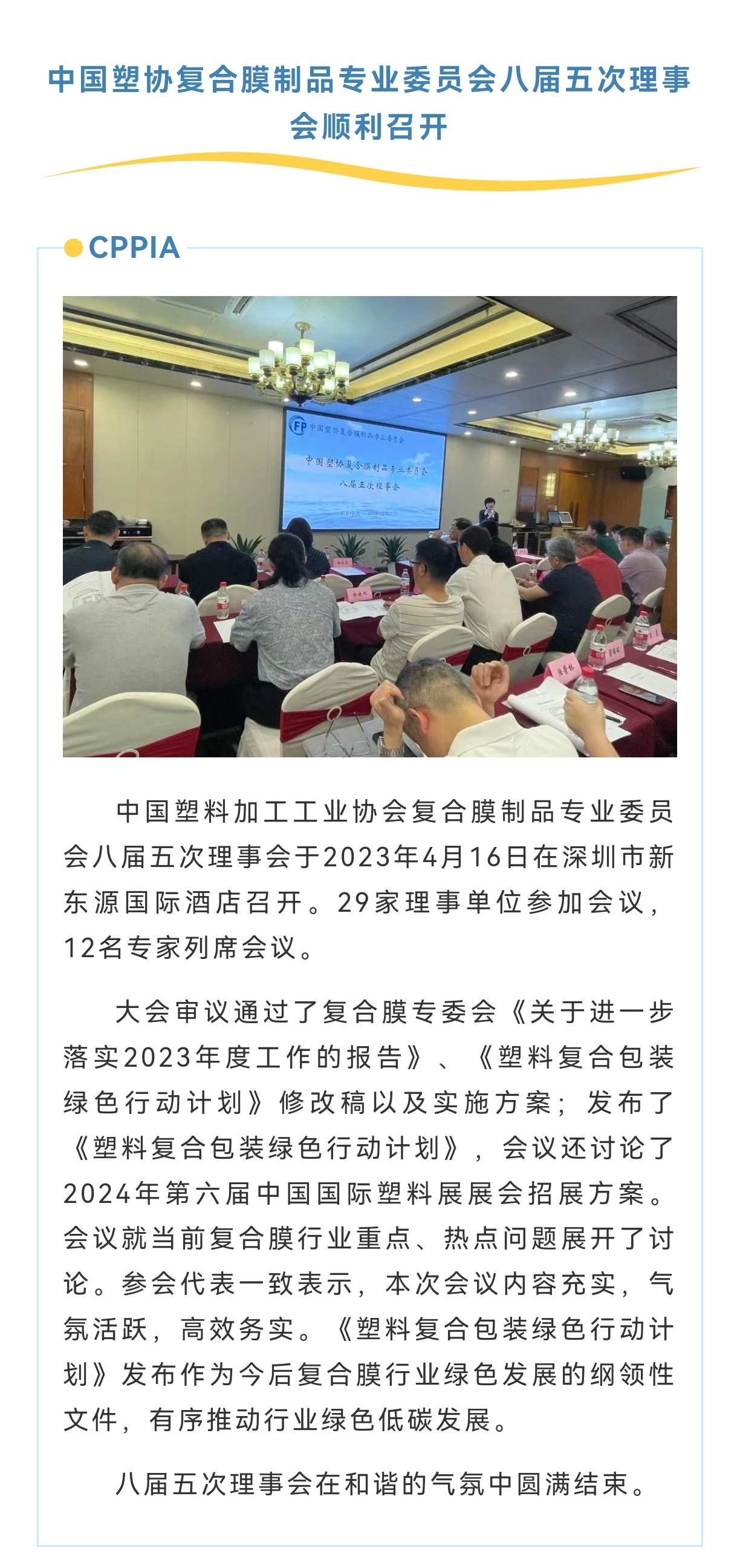 中国塑协复合膜制品专业委员会八届五次理事会顺利召开