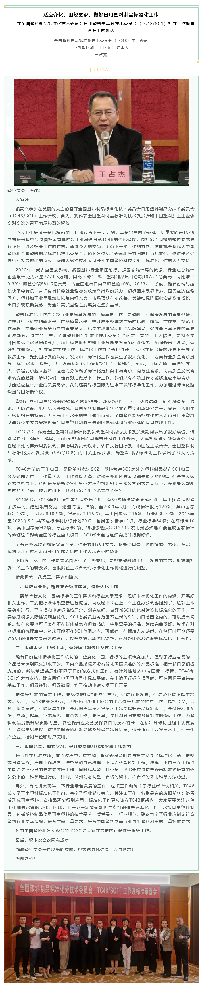 上一篇:王占杰理事长在中国塑料加工工业协会“塑料行业-绿色助行 标准领跑”启动会上的讲话