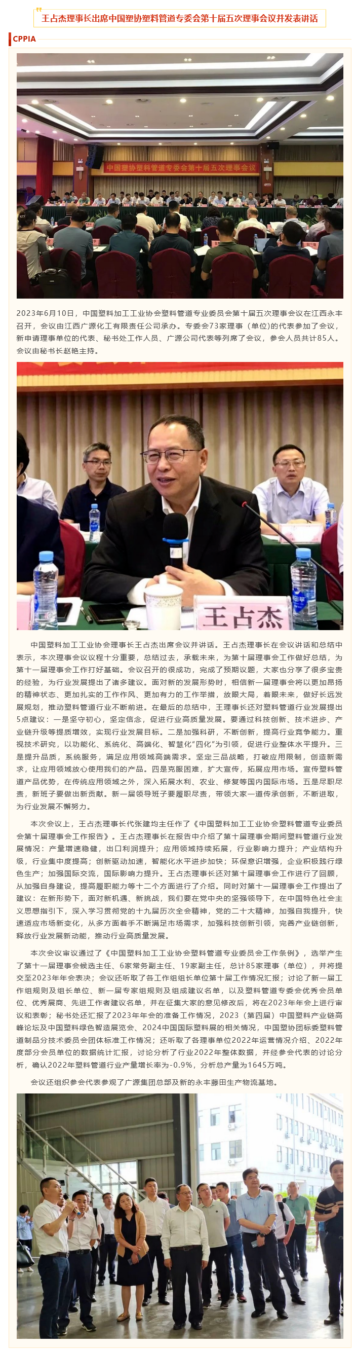 王占杰理事长出席中国塑协塑料管道专委会第十届五次理事会议并发表讲话
