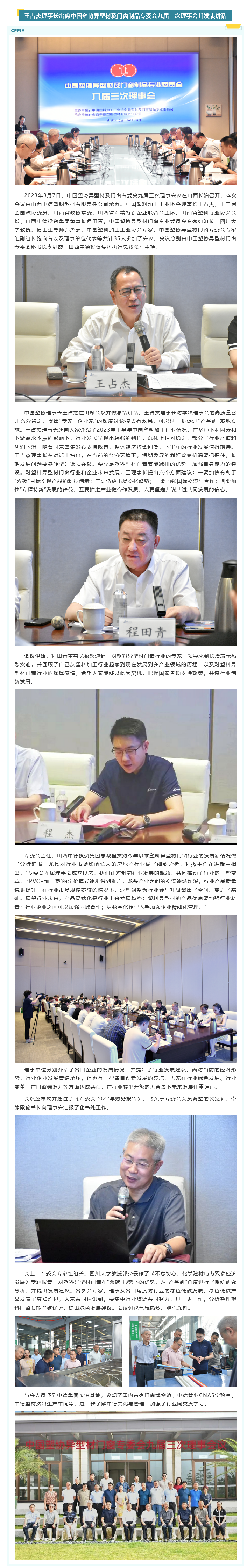 王占杰理事长出席中国塑协异型材及门窗制品专委会九届三次理事会并发表讲话