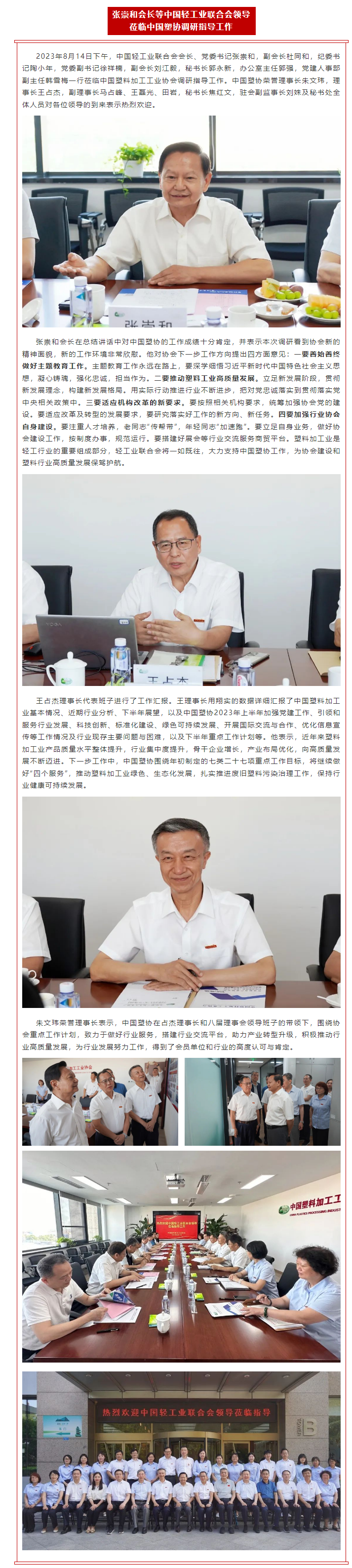 张崇和会长等中国轻工业联合会领导莅临中国塑协调研指导工作