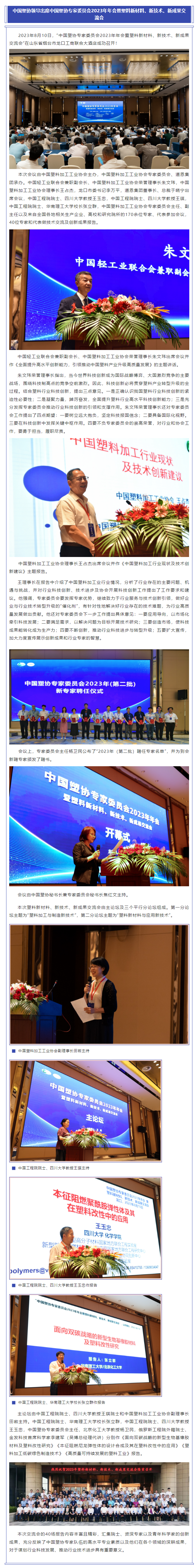 中国塑协领导出席中国塑协专家委员会2023年年会暨塑料新材料、新技术、新成果交流会