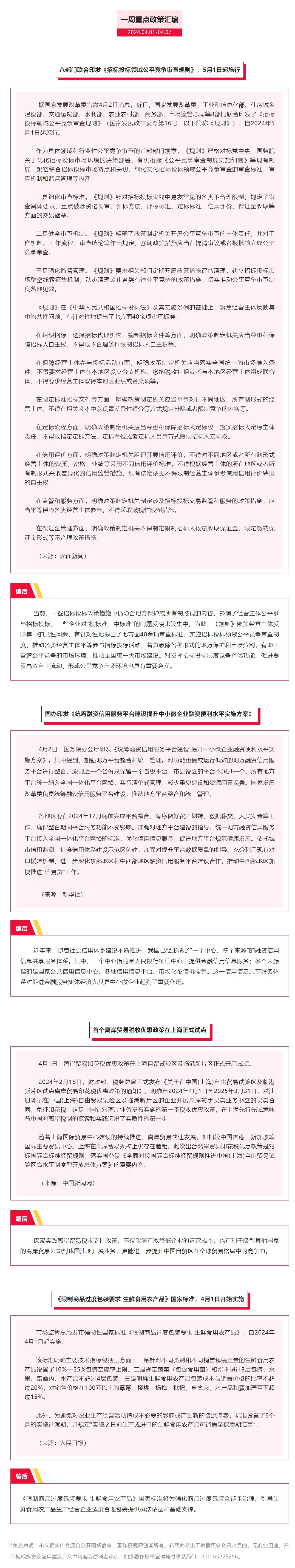 政策速递 | 一周重点政策汇编【2024.04.01-04.07】