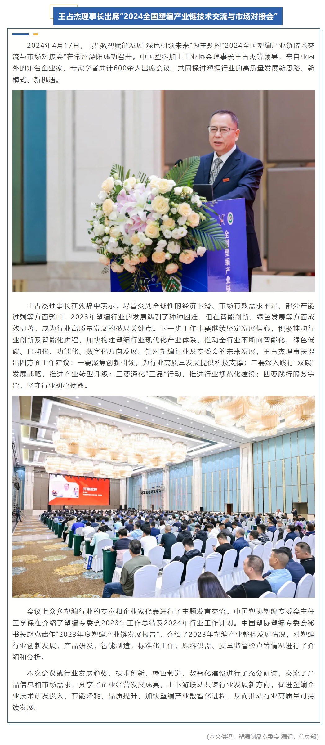 王占杰理事长出席“2024全国塑编产业链技术交流与市场对接会”