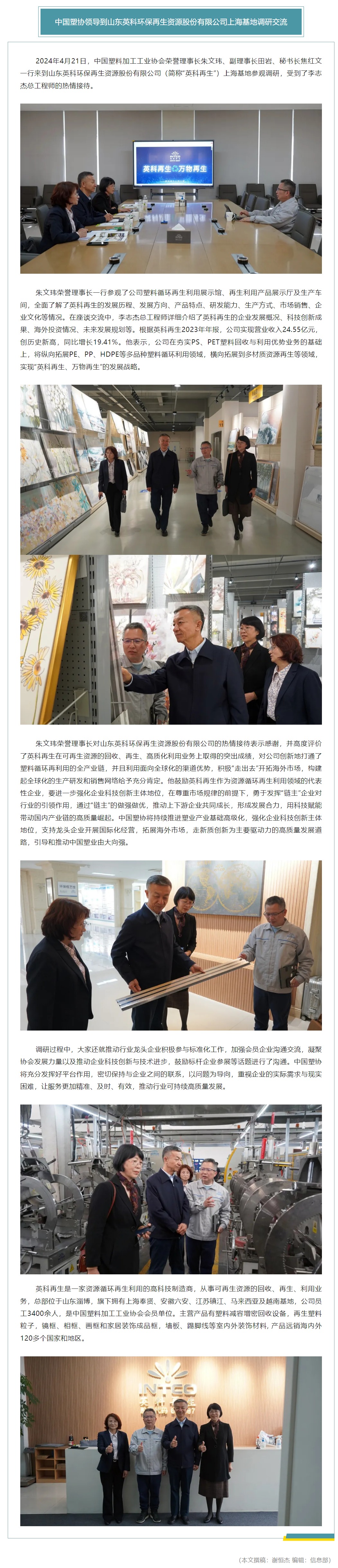 中国塑协领导到山东英科环保再生资源股份有限公司上海基地调研交流