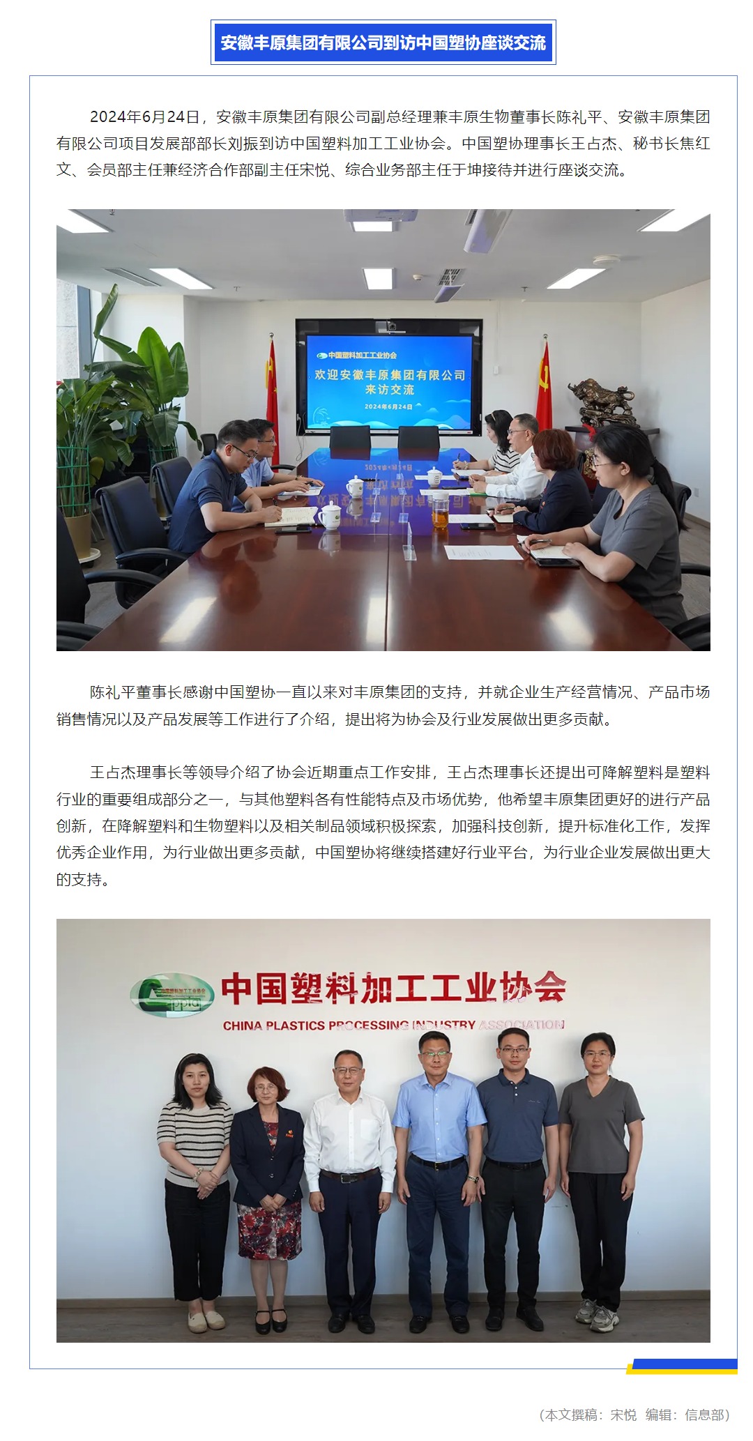 安徽丰原集团有限公司到访中国塑协座谈交流