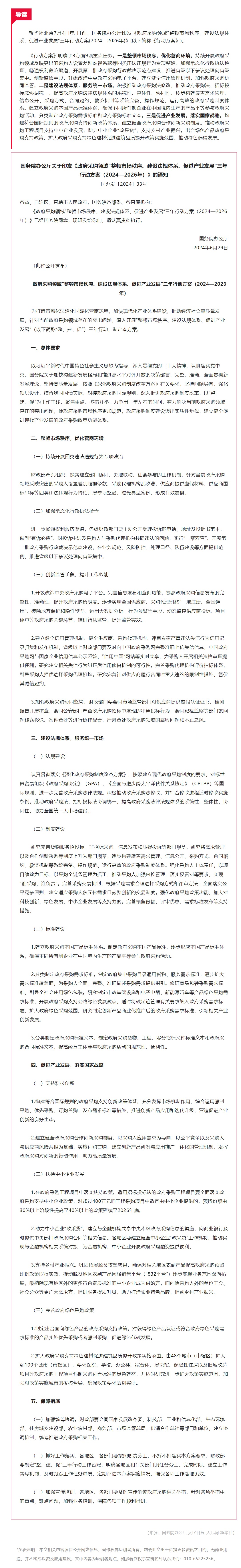 政策速递 | 国办印发《政府采购领域“整顿市场秩序、建设法规体系、促进产业发展”三年行动方案(2024—2026年)》