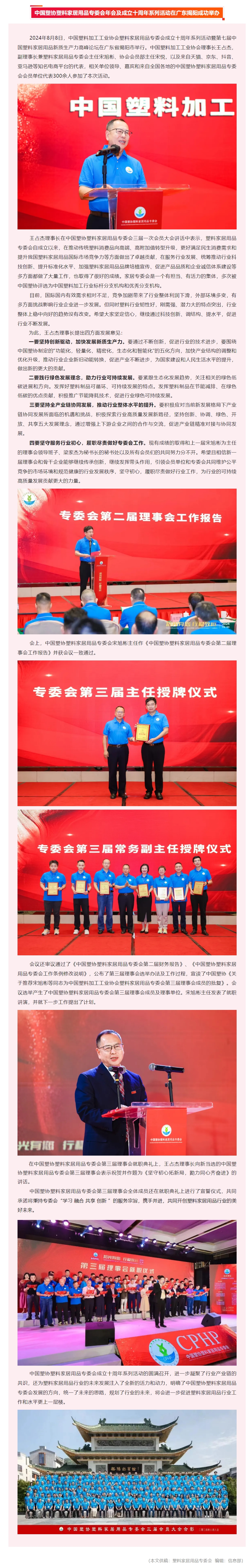 中国塑协塑料家居用品专委会年会及成立十周年系列活动在广东揭阳成功举办