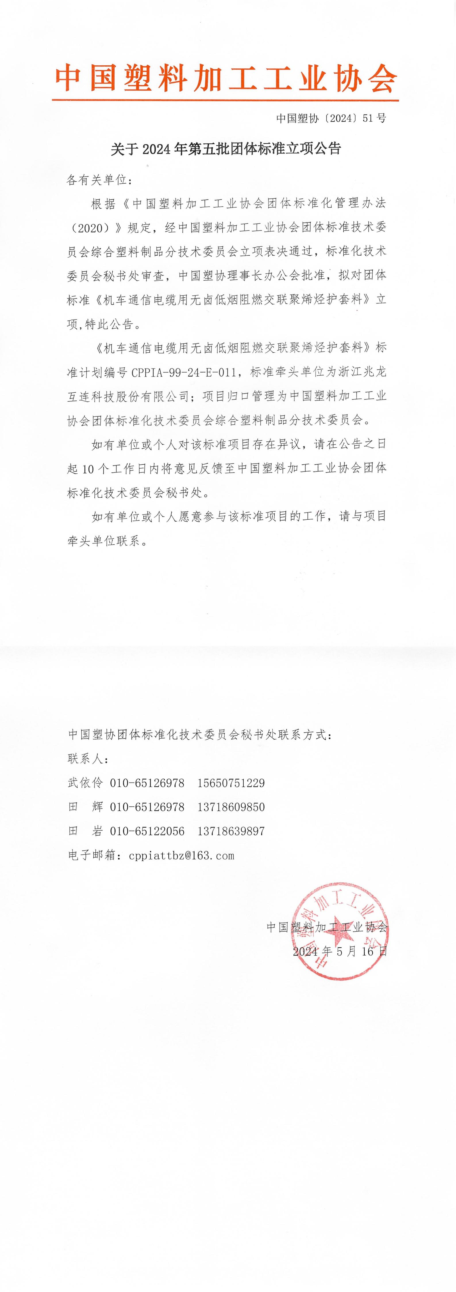 中国塑协【2024】51号 关于2024年第五批团体标准立项公告.pdf
