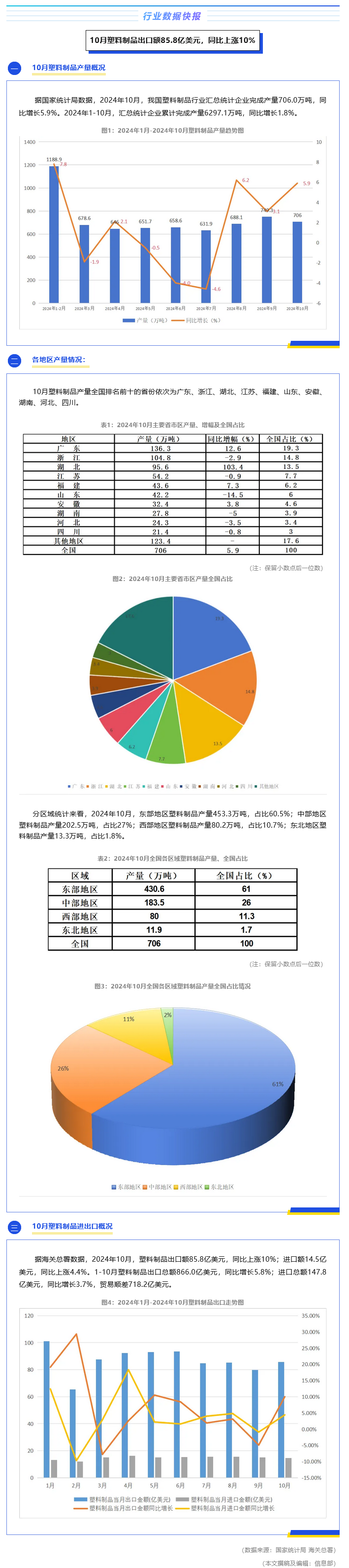 行业数据快报 | 10月塑料制品出口额85.8亿美元,同比上涨10%