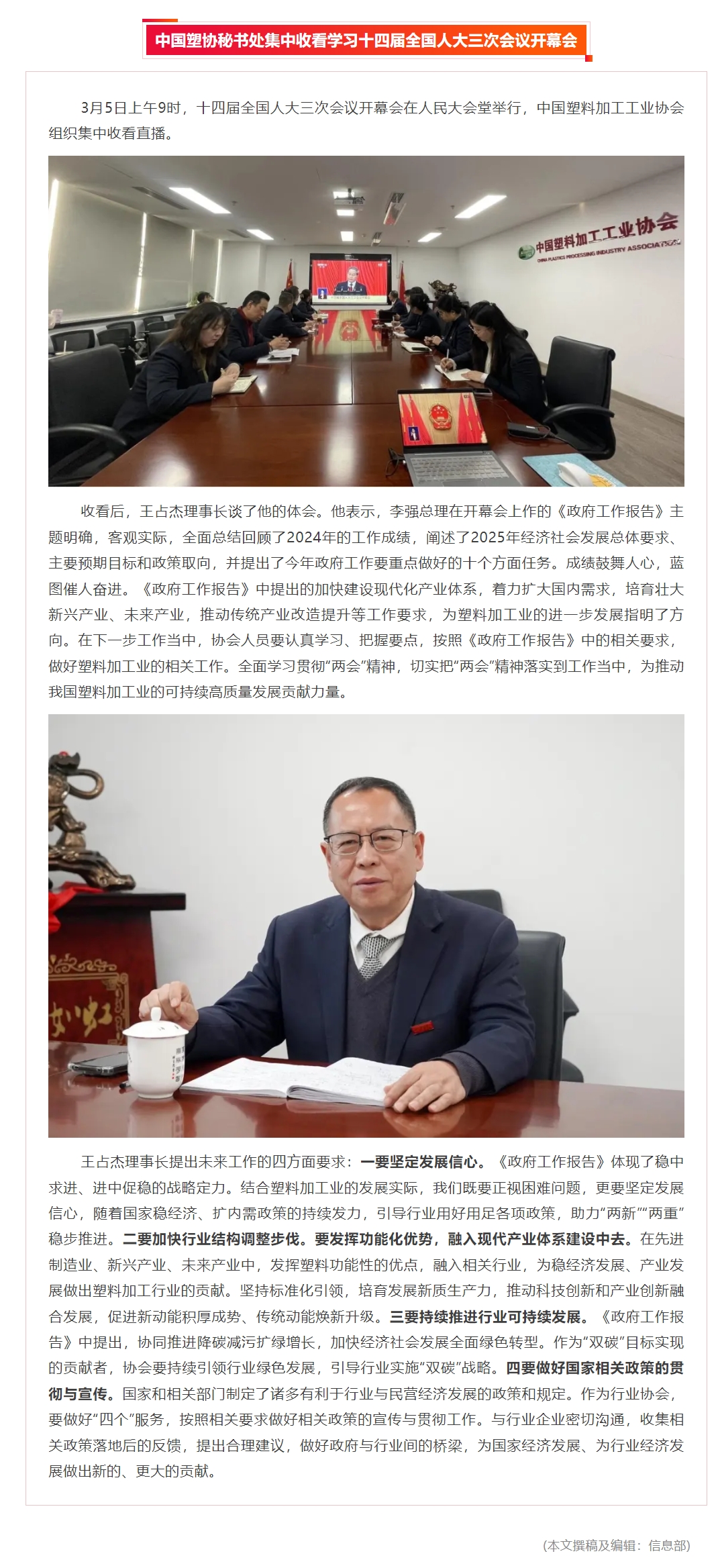 | 中国塑协秘书处集中收看学习十四届全国人大三次会议开幕会_中国塑料加工工业协会
