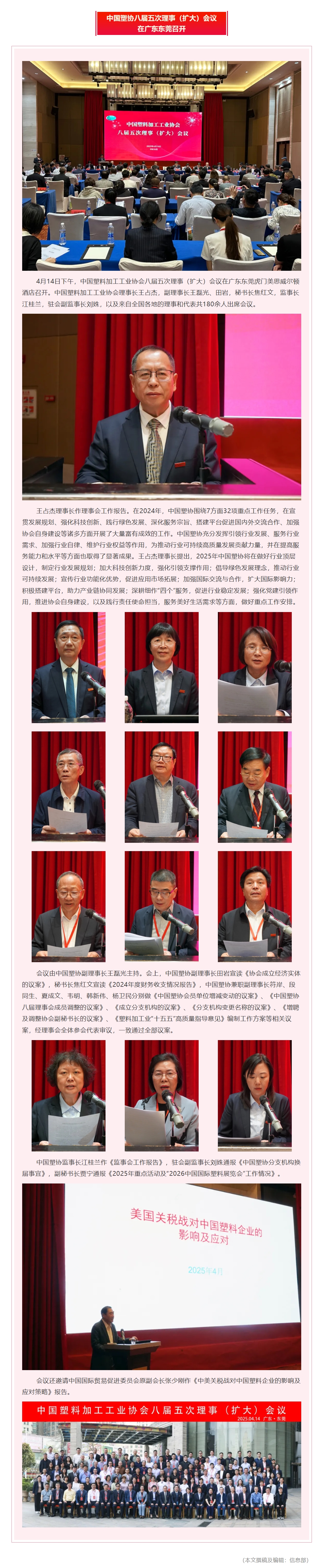 中国塑协八届五次理事(扩大)会议在广东东莞召开