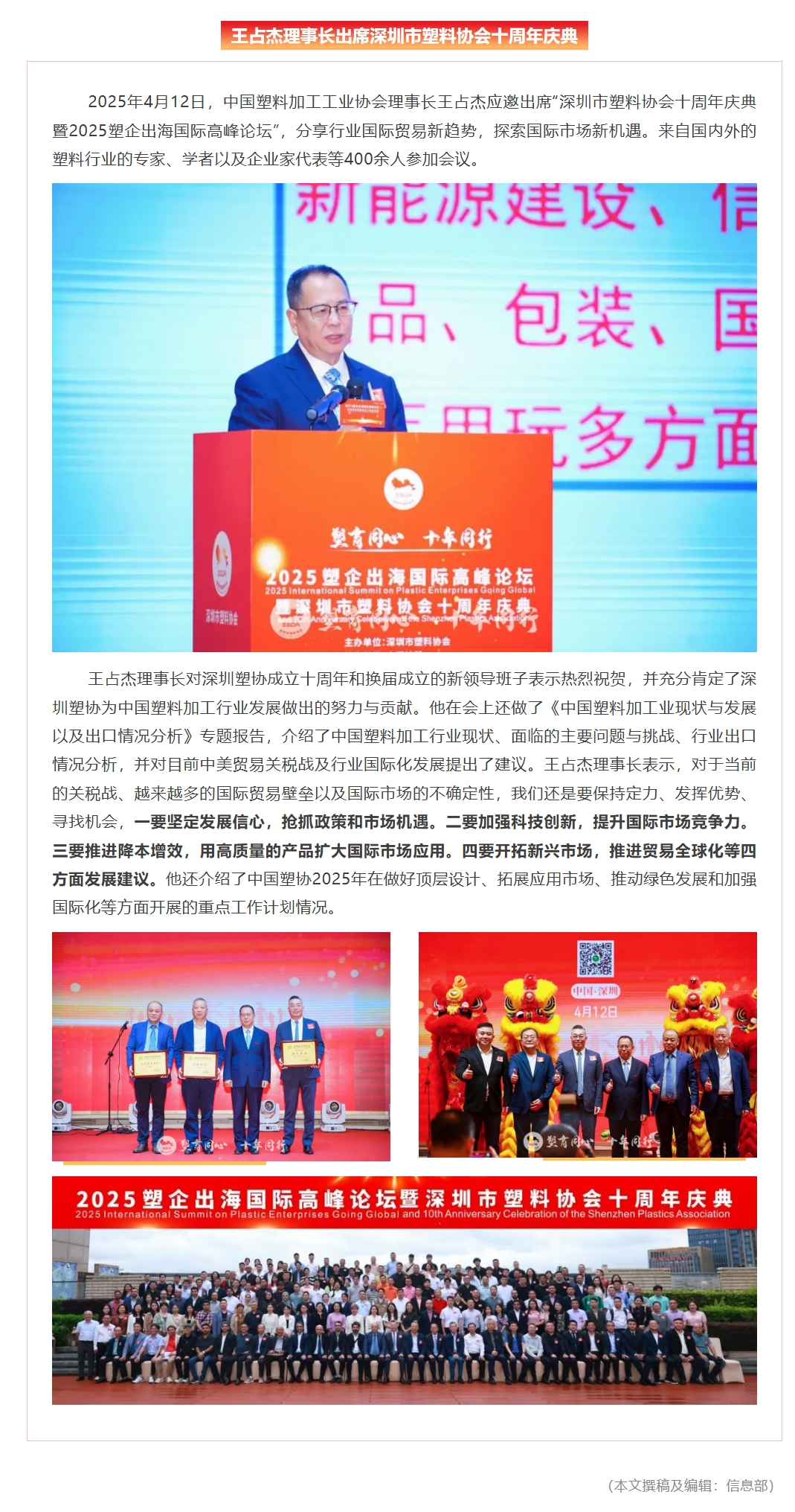 王占杰理事长出席深圳市塑料协会十周年庆典