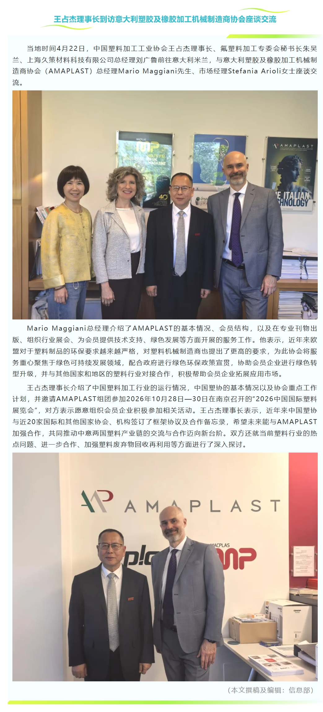 王占杰理事长到访意大利塑胶及橡胶加工机械制造商协会座谈交流