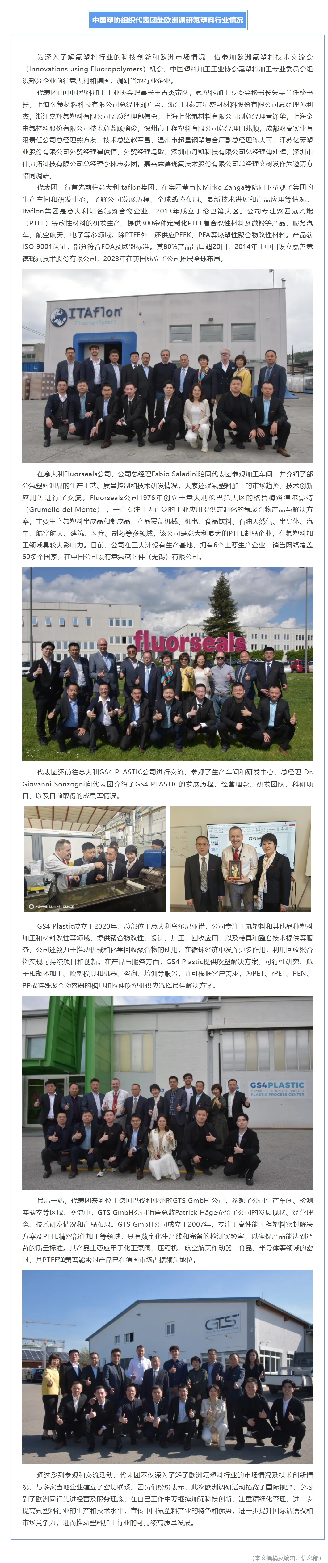 中国塑协组织代表团赴欧洲调研氟塑料行业情况