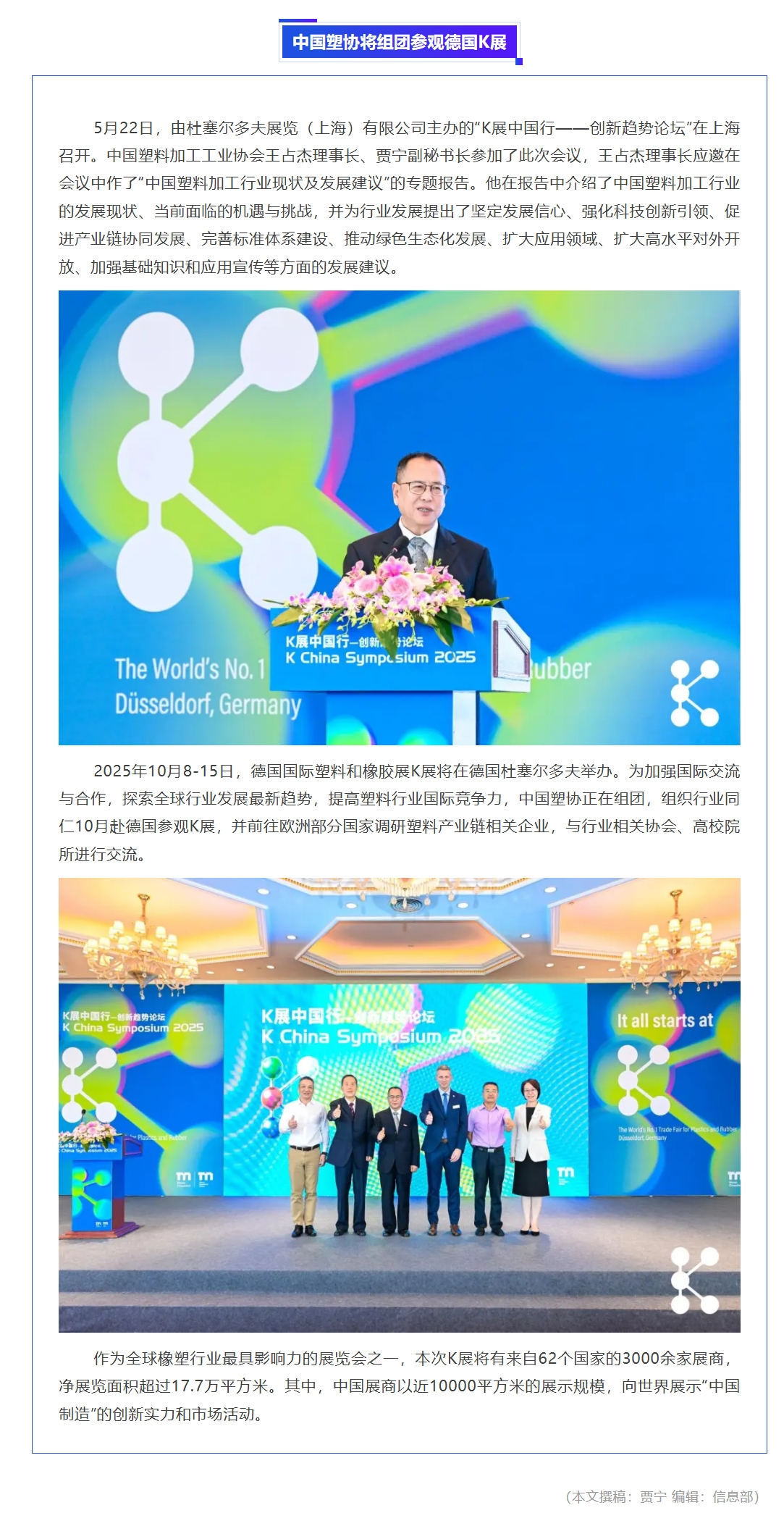 中国塑协将组团参观德国K展
