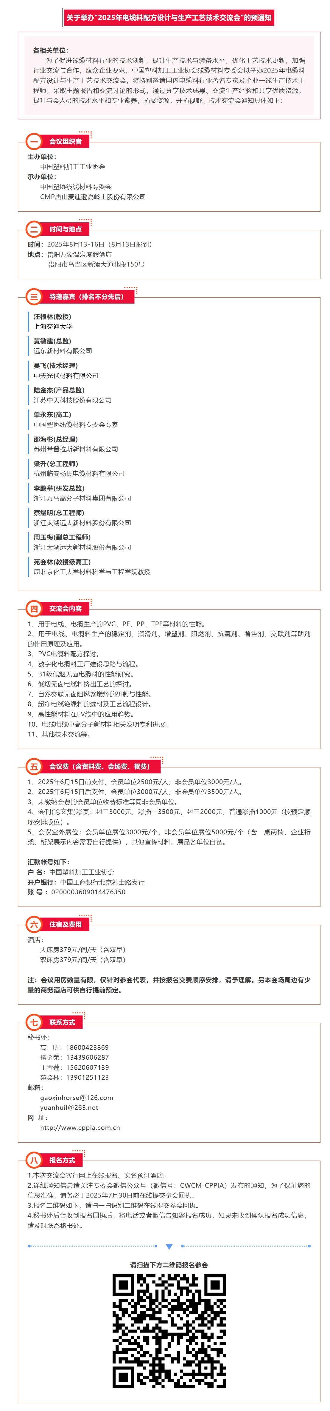 关于举办“2025年电缆料配方设计与生产工艺技术交流会”的预通知
