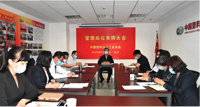 根据工作的需要和干部成长培训计划安排,经理事长办公会议研究决定,提出1名副秘书长,办公室副主任、综合业务部副主任、经济合作部副主任等4个拟聘岗位。按照《中国塑料加工工业协会章程》、《中国塑料加工工业协会部门岗位竞聘办法》及《中国塑料加工工业协会2020年管理岗位竞聘上岗方案》,经本人申报,任职资格审核,理事长办公会研究,于2020年5月12日组织召开了“中国塑料加工工业协会管理岗位竞聘大会”。